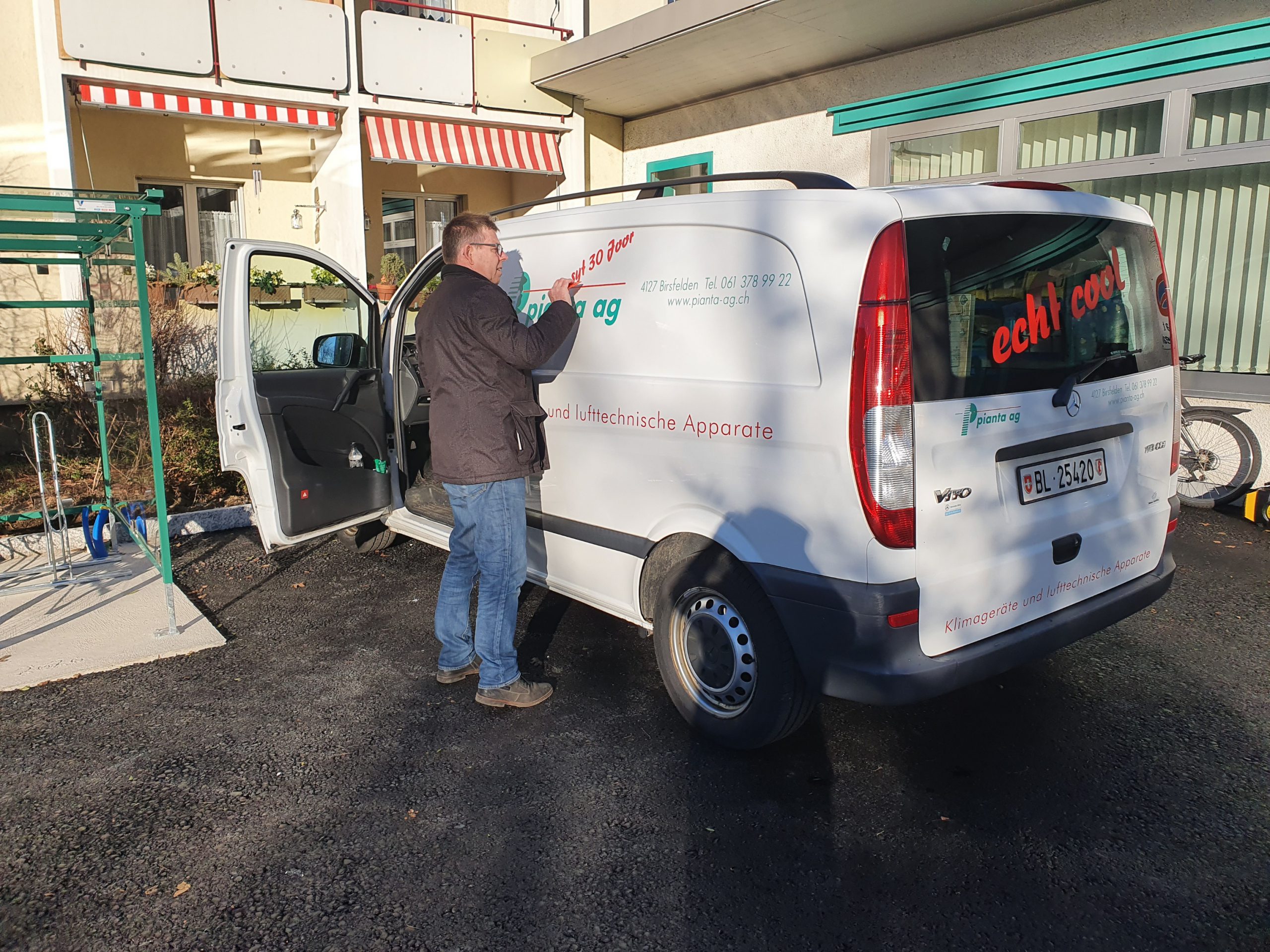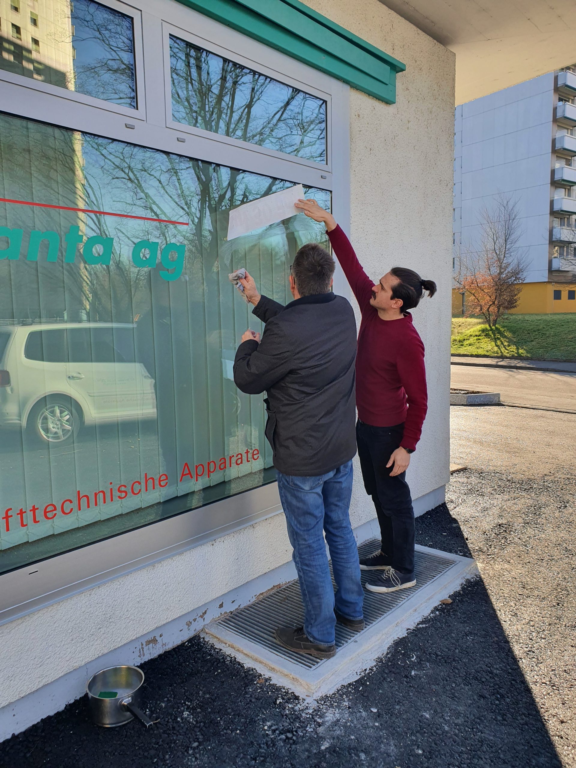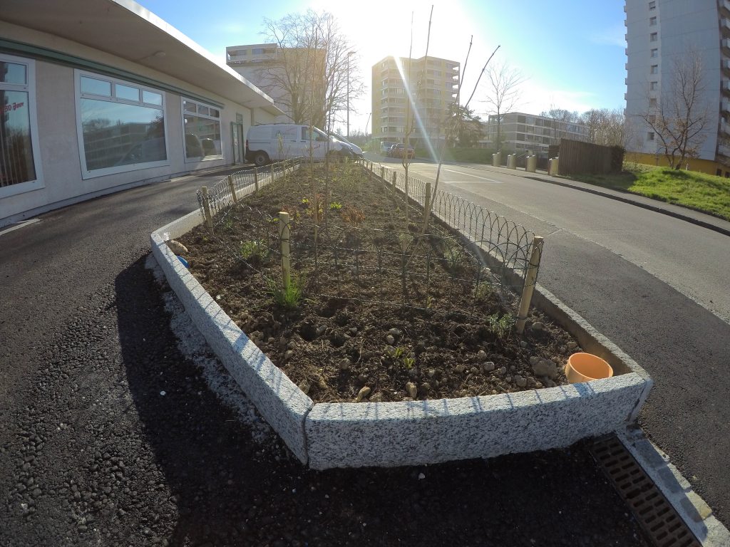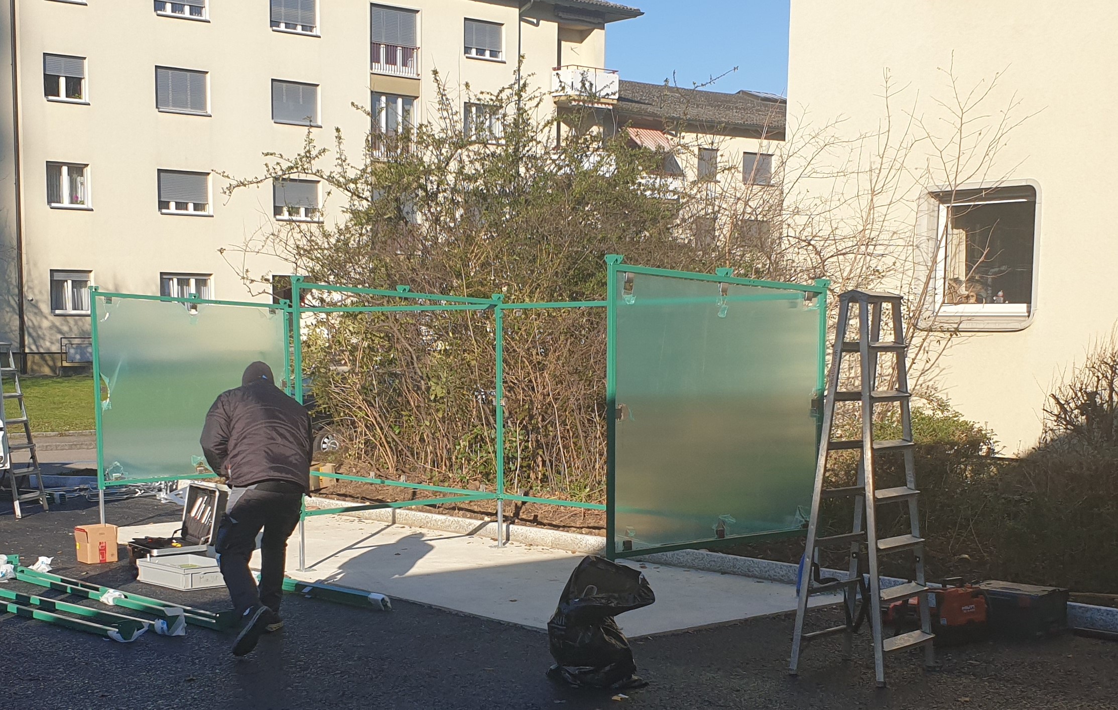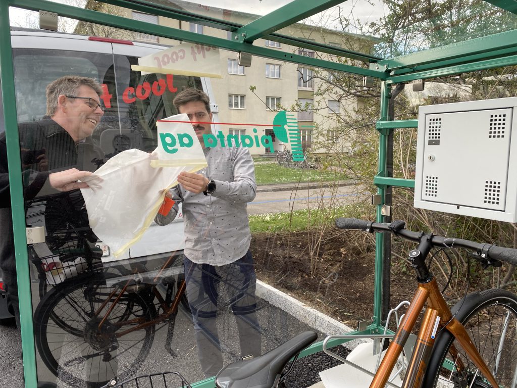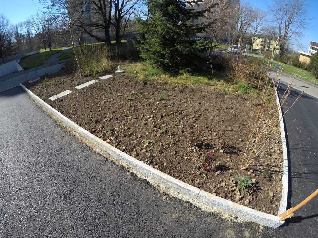 Unsere Umbauarbeiten neigen sich dem Ende. Letzte Woche haben wir unseren Velounterstand beschriftet und die Grünflächen wurden neu bepflanzt.